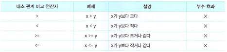 비교 연산자는 좌항과 우항의 피연산자를 비교한 다음 그 결과를 불리언 값으로 반환한다.