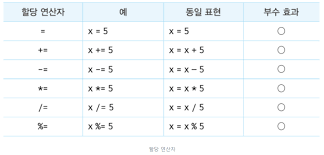 | 피연산자(Operand) | 연산에 참여하는 변수나 상수 |