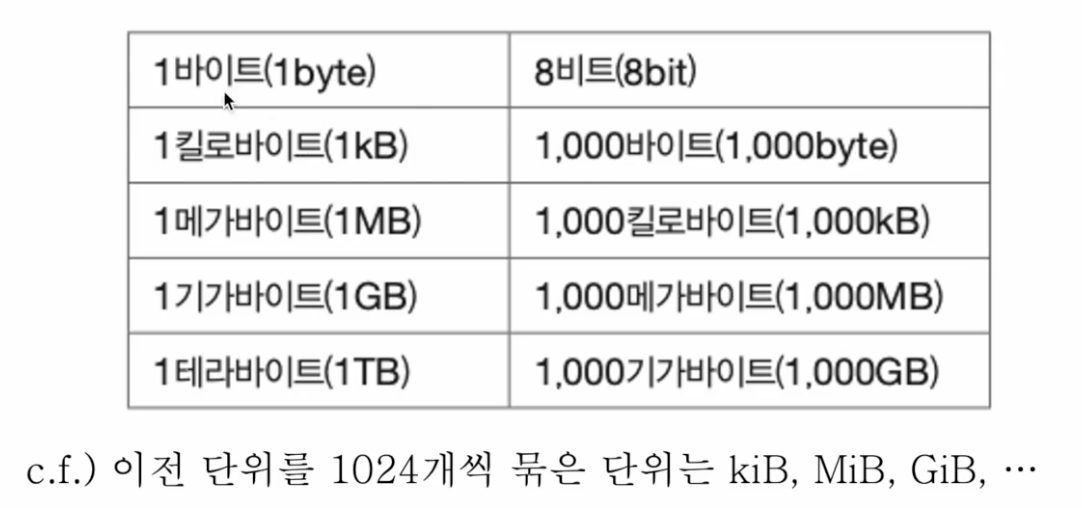 - 비트보다 더 큰 단위가 존재한다. ex) 바이트, 킬로바이트, 메가바이트, 기가바이트 ...