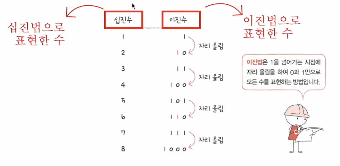 비트(bit) : 0과 1을 표현하는 가장 작은 정보 단위 (=컴퓨터가 이해할 수 있는 가장 작은 정보 단위)