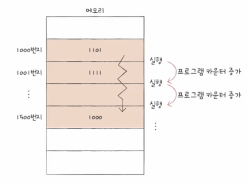 위에서 강조된게 프로그램 카운터는 1 증가한다고 하였는데 이것이 프로그램이 순차적으로 실행할 수 있는 원리가 된다.