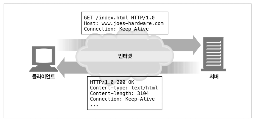 HTTP/1.0 keep-alive 커넥션을 구현한 클라이언트는 커넥션을 유지하기 위해서 요청에 Connection:Keep-Alive 헤더를 포함시킨다. 이 요청을 받은 서버는 그다음 요청도 이 커넥션을 통해 받고자 한다면, 응답 메시지에 같은 헤더를 포함시켜 응답한다. 응답에 Connection:Kepp-Alive 헤더가 없으면, 클라이언트는 서버가 keep-alive를 지원하지 않으며, 응답 메시지가 전송되고 나면 서버 커넥션을 끊을 것이라 추정한다.