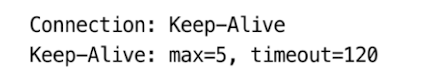 Keep-Alive 헤더 사용 다음의 예는 서버가 약 5개의 추가 트랜잭션이 처리될 동안 커넥션을 유지하거나, 2분 동안 커넥션을 유지하라는 내용의 Keep-Alive 응답 헤더다.
