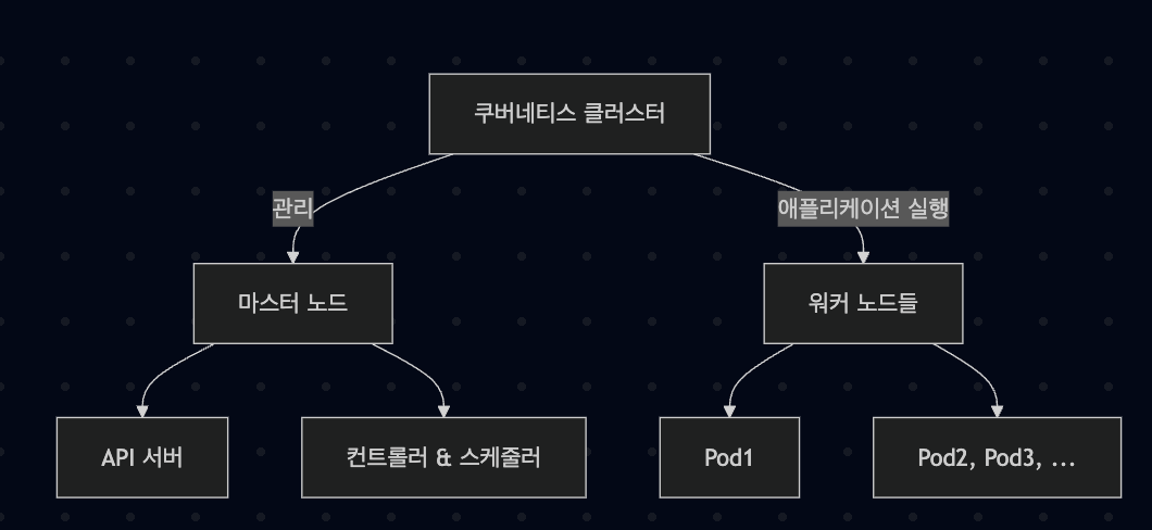 - 워커 노드들 : 실제 애플리케이션이 실행되는 서버들이다. 워커 노드에는 하나 이상의 Pod가 실행된다.