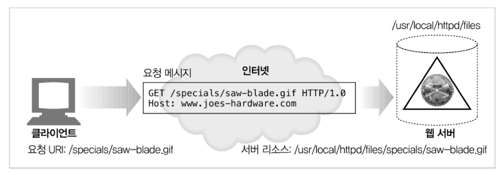 웹 서버가 요청을 받으면, 서버는 요청으로부터 메서드, 리소스, 헤더, 본문을 얻어내어 처리한다.