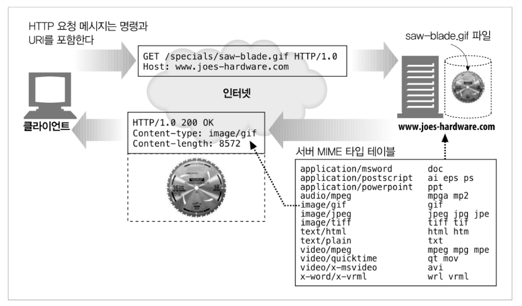 - 응답 본문의 MIME 타임을 서술하는 Content-Type 헤더