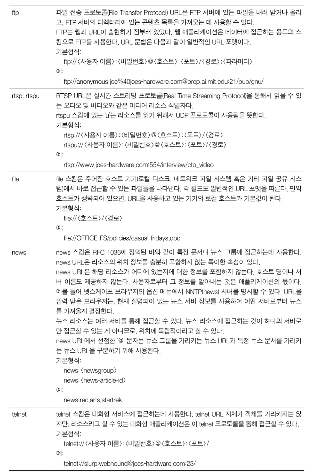 URL은 HTTP 프로토콜이 아닌 다른 가용한 프로토콜을 사용할 수도 있다.
